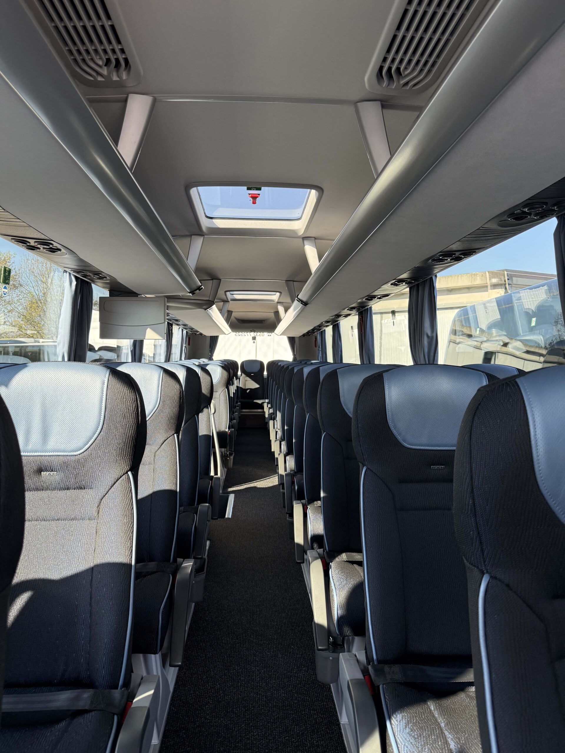 Il pullman a noleggio può ospitare fino a 54 passeggeri comodamente seduti. Per soddisfare diverse esigenze di trasporto con autista e garantire il massimo comfort durante i viaggi, sia di piacere che di lavoro, ogni veicolo è finemente rifinito e dotato di tutte le comodità.